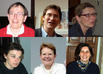 Photo des intervenants des ateliers 2008-2009 : en haut, de gauche à droite : Nicole Moine, Rudi Popp, Liliane Plouchart, et en bas : Christine Prieto, Geneviève Villain et Christine Popp