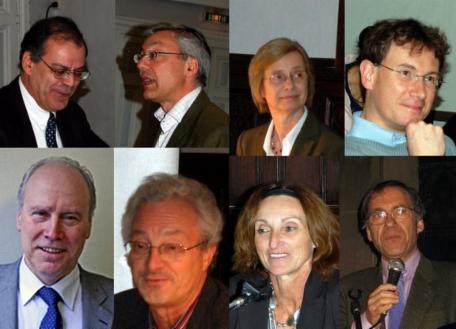 Photo des intervenants des "causeries" 2008-09 : en haut de gauche à droite : Lucien Larret, Gilles Bourichon, Corinna Combet-Galland et Arnaud Toury, et en bas : Claude Baty, Hugues Lebailly, Véronique Alémany et Jérôme Cottin